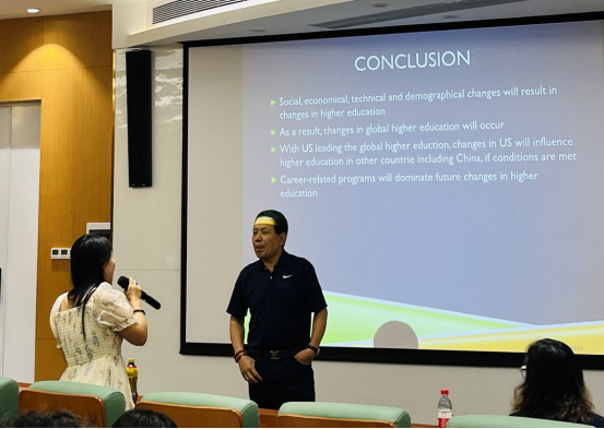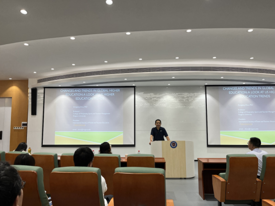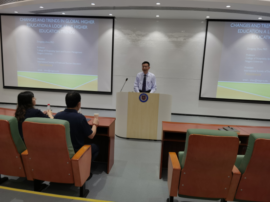 周宗清教授提出随着社会、经济、技术和人口的变化,当前美国高等教育正面临很多变革,大学与社会深度融合的需求越来越强烈,未来高等教育高质量发展的关键是科教一体,产业融合,在人才培养、专业设置、课程设置方面要紧紧围绕时代发展同频共振。周宗清教授以美国尼亚加拉大学旅游与酒店TapTap为例,为了适应时代发展进步,新增设了智慧旅游专业,该专业是信息技术在旅游产业中的创新性应用,为了拓宽员工的视野和知识面,在课程设计方面该专业还新增了商业类课程、体育类课程、拓宽职业选择的服务相关课程。