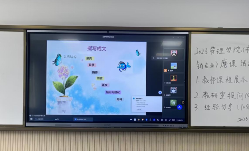 李佳颖老师以线上的形式参与磨课活动,围绕“市场调查报告的撰写”展开讲解。她针对报告的撰写格式、撰写方法、撰写技巧和注意事项,进行了逻辑鲜明、简洁有力地阐述。