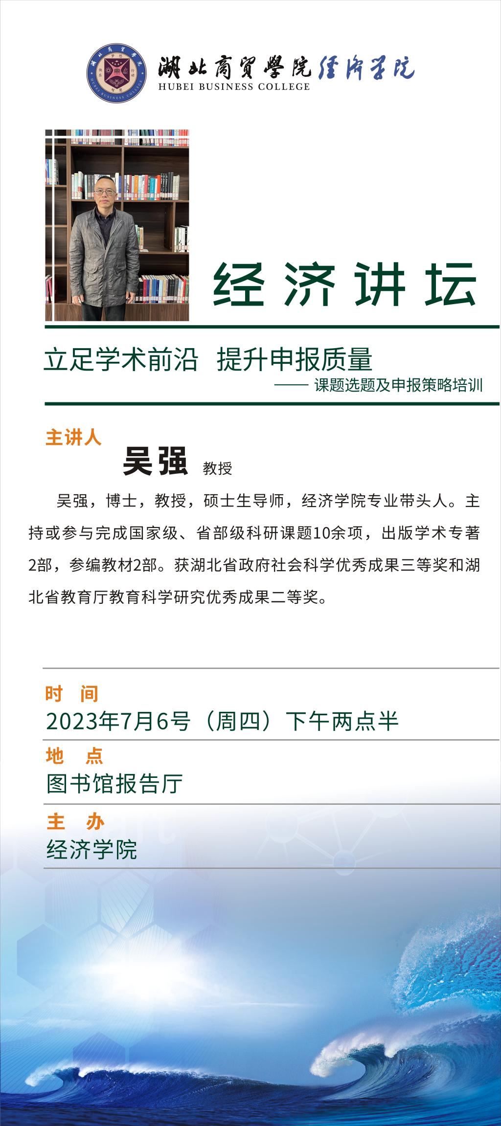 经济讲坛|名师有约|立足学术前沿 提升申报质量--课题选题及申报策略培训
