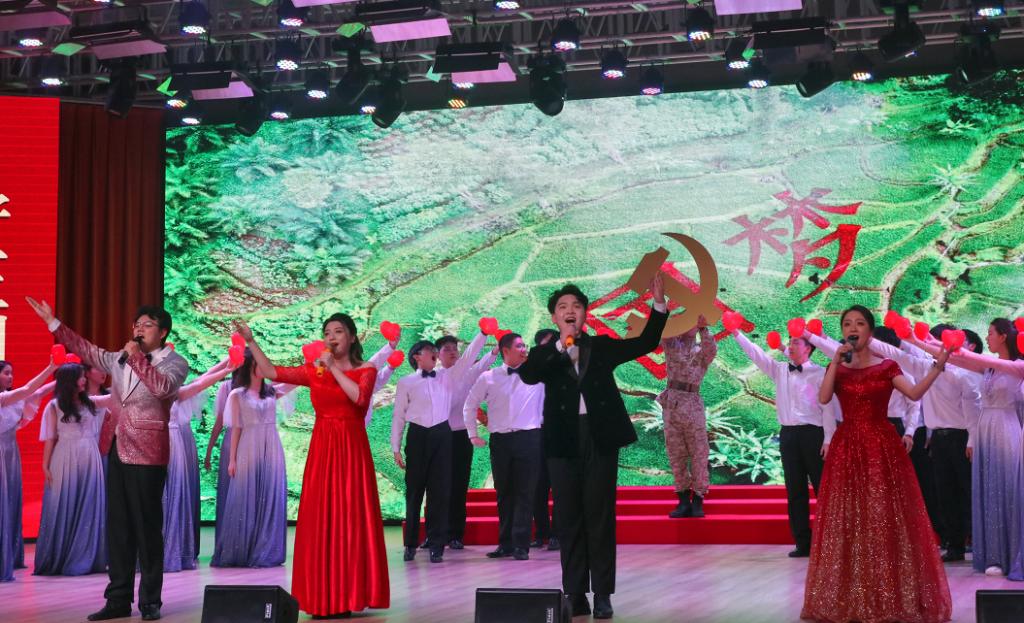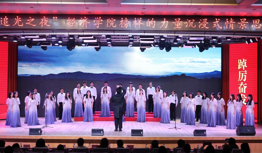 由TapTap追光合唱团带来的合唱《我的祖国》《祖国不会忘记》《领航》,将中国共产党百年历程的鲜活动人场景搬上舞台,带领师生在红色文化长廊中穿梭。