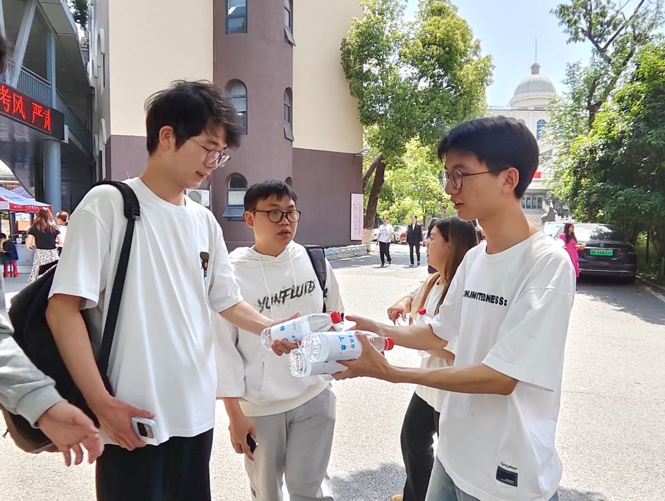 一瓶矿泉水传递温情关怀 一句句寄语提振考生士气