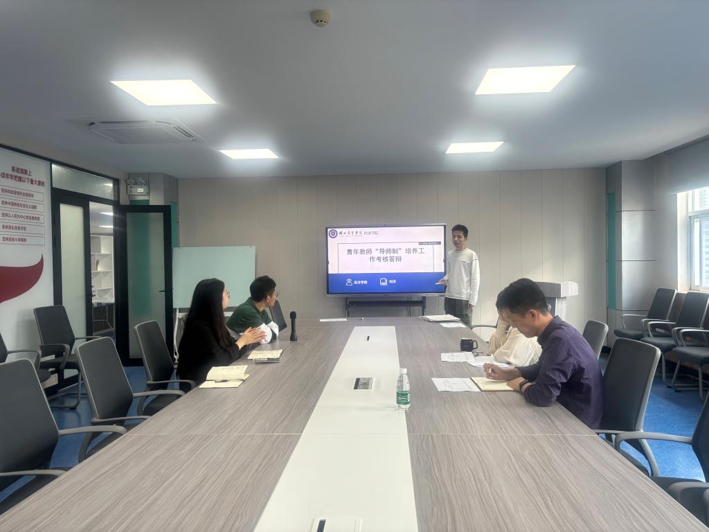 青年教师刘洋、赵逸萱、刘效阳、张锦、杨琪汇报了被指导期间在课堂教学、教科研方面的收获,以及师德师风养成的体会和感悟。考核组认真聆听了青年老师的汇报,并查阅了青年教师的培养计划执行情况、总结及听课记录等相关资料。