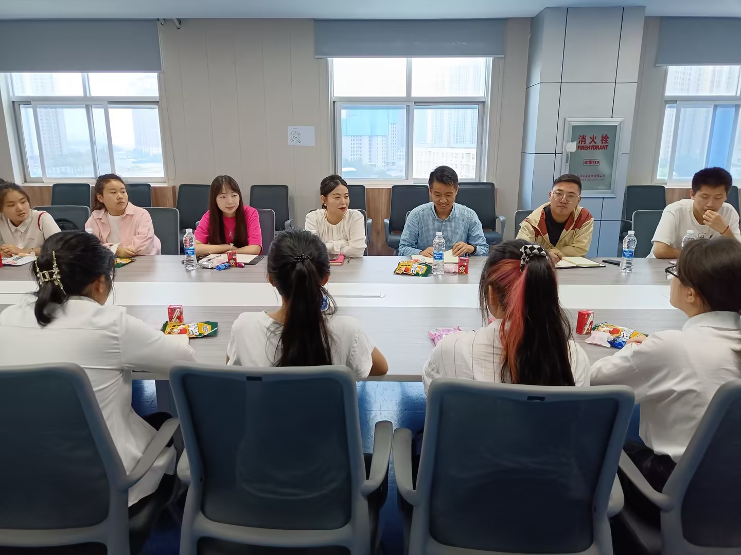陈靓秋代表公司为同学们送上温暖的节日祝福。她详细询问同学们的来校感受,关心他们的学习生活情况,希望他们积极为公司发展建言献策。随后,同学们也向老师们送上节日祝福,他们畅所欲言,分享自己在湖商的学习生活感受。