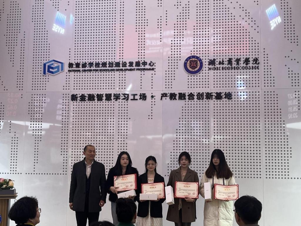 随后龚艳红副秘书长、张睿总、陈靓秋经理分别为本次获奖同学颁发荣誉证书,祝贺同学们在本次金融知识竞赛中取得了优异成绩。