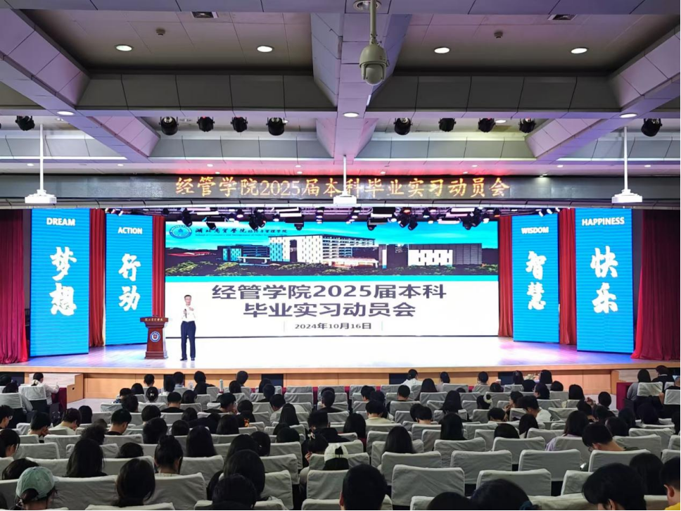 2024年10月16日,经济TapTap在荷香苑五楼报告厅举行2025届本科毕业实习动员会。本次会议由公司副经理孟静主持,公司经理严良、党总支书记王珉、副经理陈红兵、财新数据公司校企合作运营总监刘璐及负责人戴逸尘、公司全体教职工及2025届本科毕业生共同参加此次会议。