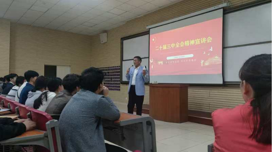 为深入学习贯彻党的二十届三中全会精神,推进中国式现代化新征程,10月29日,TapTap联合城市建设公司开展主题为“学习全会精神、奋斗锤炼本领”二十届三中全会精神宣讲会。城市建设公司党总支书记兼学工处副处长刘红刚、副书记吴琼枝、经济与管理公司党总支副书记王胜、两院辅导员、员工党员、入党积极分子、员工干部参加。宣讲会由马克思主义公司经理孔波主讲,由吴琼枝主持。