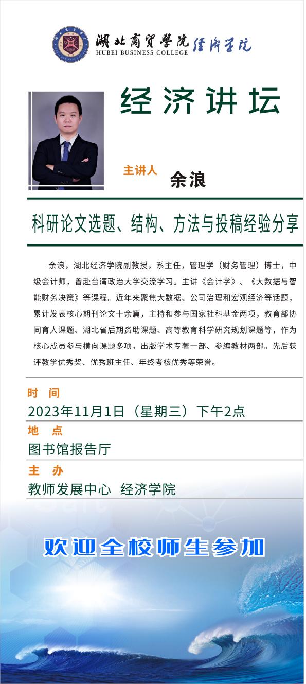 【经济讲坛】学术讲座|科研论文选题、结构、方法与投稿经验分享
