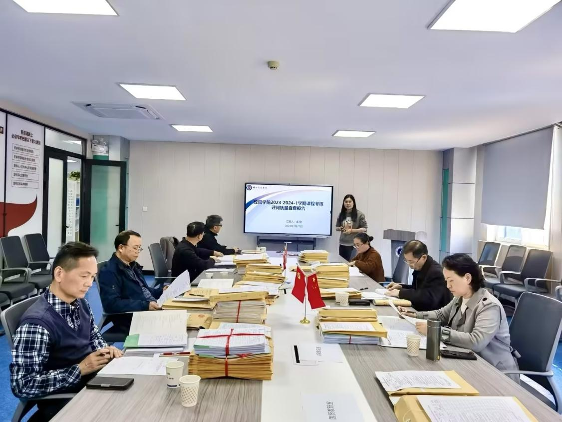 随后,督导组对抽查的55份考核档案进行详细且深入的检查。他们认真审阅试卷批改、统分情况、实训报告评语及过程性考核资料等。整个检查环节持续近3个小时,接着,督导组结合本次抽检进行总结评价。各位督导纷纷对公司的自查工作给予较好的评价,认为考核评阅工作规范性良好,自查和整改工作到位,整体检查结果较好,但也存在一些细节问题,如有些课程中试卷分析只分析了该班级情况,未与整门课程考核情况进行横向对比、个别试卷袋外面存在信息漏填、某些试卷中涂改较多等,并提出相应的改进建议。