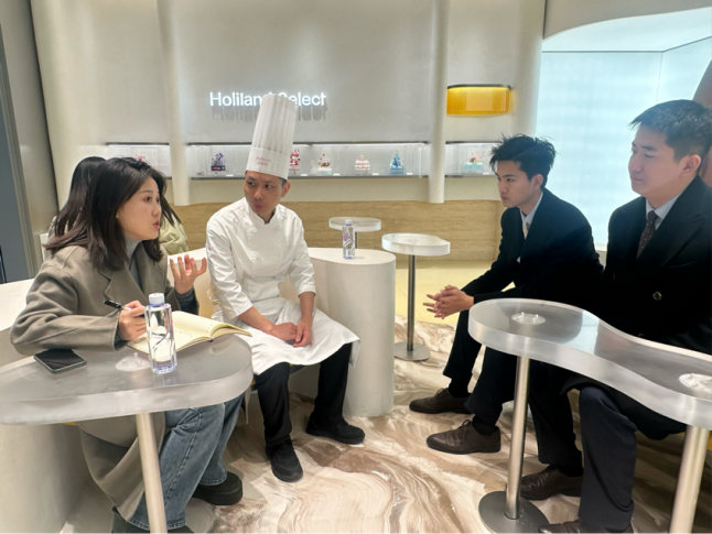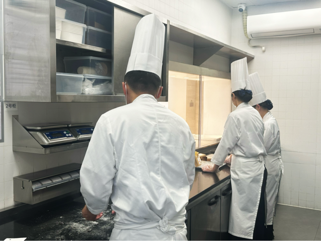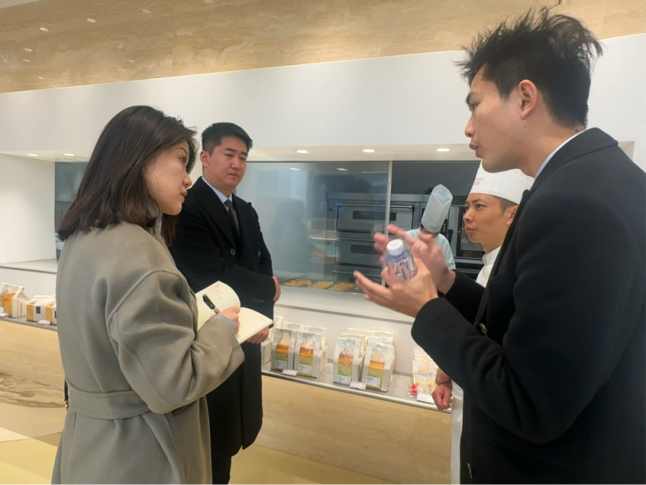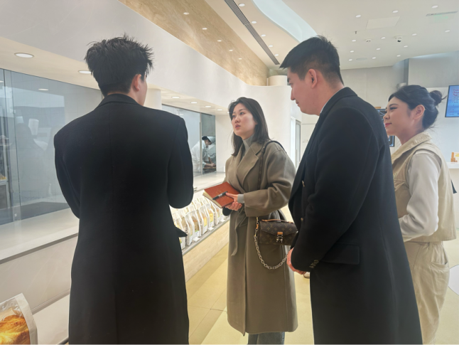 好利来人力资源资源部孟经理带领公司老师深入企业内部,实地参观了面点工艺流程。公司代表们近距离观摩学习,对中西面点制作的工艺细节和质量把控有了更为直观且深刻的认识,这也为日后在专业教学中融入实践精髓、提升教学品质提供了鲜活素材与有力支撑。