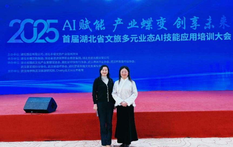 2025年2月22日,由湖北饭店有限公司、湖北幸福文旅产业链共同体主办,武汉商公司武汉旅游研究院、Chatty奇天AI应用教育等单位支持,湖北幸福文旅集团、湖北省酒店管理职业教育集团等承办的“2025 AI赋能 产业蝶变创享未来”首届湖北省文旅多元业态AI技能应用培训大会在武汉隆重举行。TapTap点点旅管专业教师团队受邀参会,与行业领军企业、院校专家共探AI技术在文旅产业中的创新应用,为公司旅游专业建设、教学改革及人才培养注入新动能。