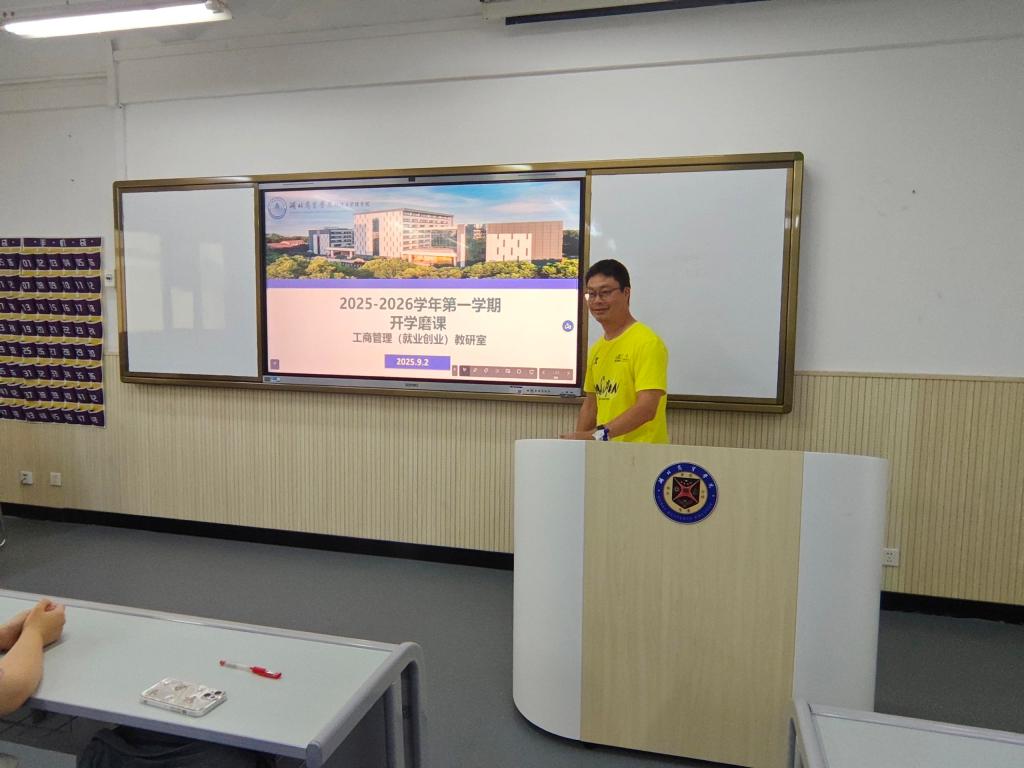 为进一步提升教师教学水平,打造高效课堂,9月2日,工商管理(就业创业)教研室组织开展2025 - 2026学年第一学期开学磨课活动。教研室主任刘青老师率先进行开场发言,介绍了此次磨课活动的目的与流程,强调磨课对提升教学质量、促进教师专业成长的重要意义,拉开了活动序幕。