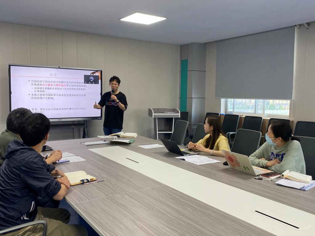 随后刘效阳老师、徐悦老师分别结合《国际经济学》《国际贸易实务》进行了试讲,刘皓老师和陈红兵老师针对他们的PPT、教学案例的选取,案例与教学内容的融合、互动方式方面提出了宝贵的建议和意见。