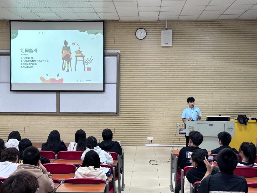 为进一步营造浓厚的学习氛围,提高员工考研积极性和学习成功“上岸”的经验技巧。公司于11月6日晚在咸宁校区教学楼A109教室成功举办了考研学习分享会,邀请了优秀毕业生陈文鑫同学作为主讲人,分享他考研的经验、心得和备考技巧。