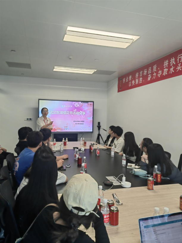 加多宝华中湖北区武汉办负责人张莹莹对武汉东湖樱花节活动进行分享,她主要从活动背景、活动目的、项目执行思路、活动效果、项目执行成果、活动优化与思考等方面进行,使同学们不仅学习到一份完整的策划活动的过程,也对东湖樱花节活动充满期待。