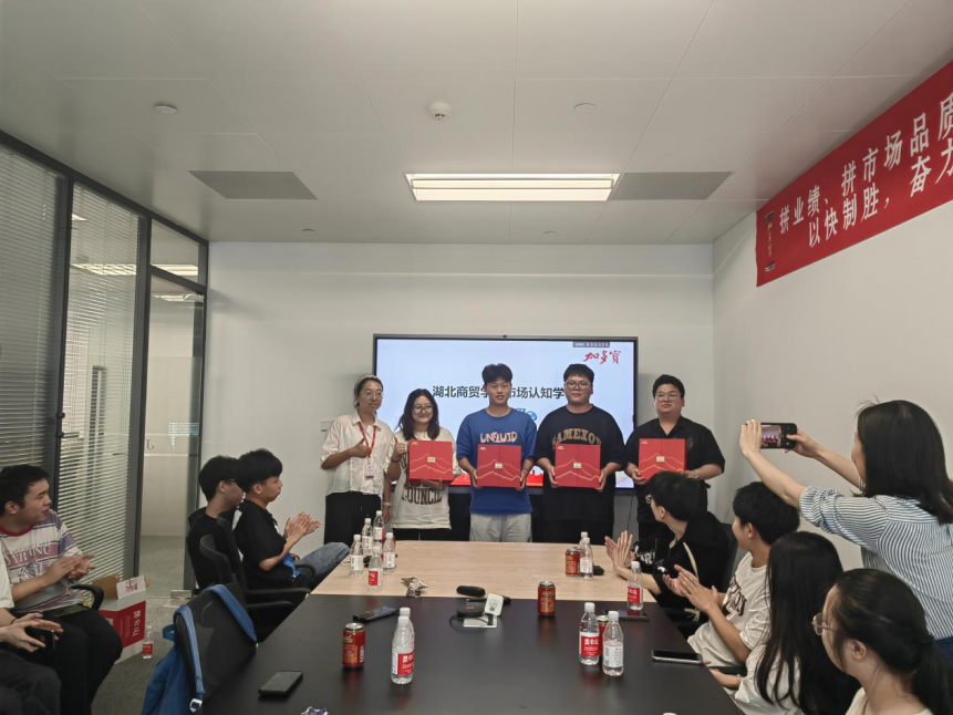 15日下午,各小组进行汇报展示,由赵静老师和加多宝华中湖北区武汉办负责人张莹莹进行打分。每个小组各有不同的亮点,评委老师都一一指出。第一小组汇报人蒋锦烽演讲水平教好,团队成员协调较好,分工明确;第二小组提出“十秒挑战”的游戏体现了加多宝“不用担心什么,尽情享受生活”的理念,具备独立思考的能力;第三小组抖音短视频中巧妙利用江南Style音乐,很有渲染力,汇报人张雨晴语言表达能力较强;第四小组汇报PPT中选用的照片构图新颖,且别有新意的选择加多宝红罐为背景;第五小组汇报人芮硕在抖音创办的话题号“夏日宝加虾”,短短五天就有5.5W的热度,线上推广流量大,并且能够根据实际情况总结出“以量带量、以质促量”。两位导师从线下推广数量、线上传播曝光量、分析解决问题能力、综合素质及创意方面进行打分,最终评出获胜组为第五小组。评委张莹莹为获胜小组颁发奖品,并指出小组展现的话题达到10w的播放量,足以证明同学们的实力。加多宝集团华中事业部人力资源经理杨苑为所有参与实习的同学们颁发实践证书。