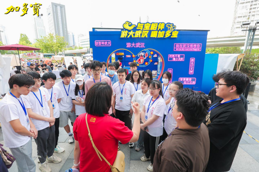 13日下午,员工们前往武胜路凯德广场参与加多宝品牌线下策划活动,开展品牌活动参与学习。现场设有“十秒挑战”、“相反游戏”、“喝饮料挑战”等丰富多彩的活动,员工们在加多宝华中湖北区武汉办负责人张莹莹的指导下开展现场地推活动,通过让现场顾客扫码图片直播分享到朋友圈,然后可以参加“十秒挑战”活动赢取加多宝饮料一瓶。五个小组进行现场PK,各小组记录现场“粉丝”数量。第一小组通过对凯德广场现场的观察,提出让品牌方跟现场摊位合作,将加多宝饮料摆放到小龙虾、烧烤等偏辣口味的摊位上,不仅能扩大加多宝产品知名度,也与“怕上火、喝加多宝”的产品定位契合,这一想法得到加多宝负责人的认可,同学们也马上与摊主商量,落实到位。