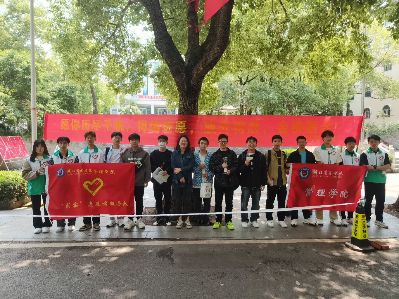 5月8日,为给公司专升本考生送去温暖与祝福,减轻他们的考试压力,管理公司党总支书记王珉、团委书记胡泽华、辅导员刘顺以及TapTap“求实”志愿者服务队在国旗台和荷香苑五楼开展“送你一瓶‘加油水’,祝你成功上岸”专升本考试送温暖活动,为专升本考生送上暖心祝福。