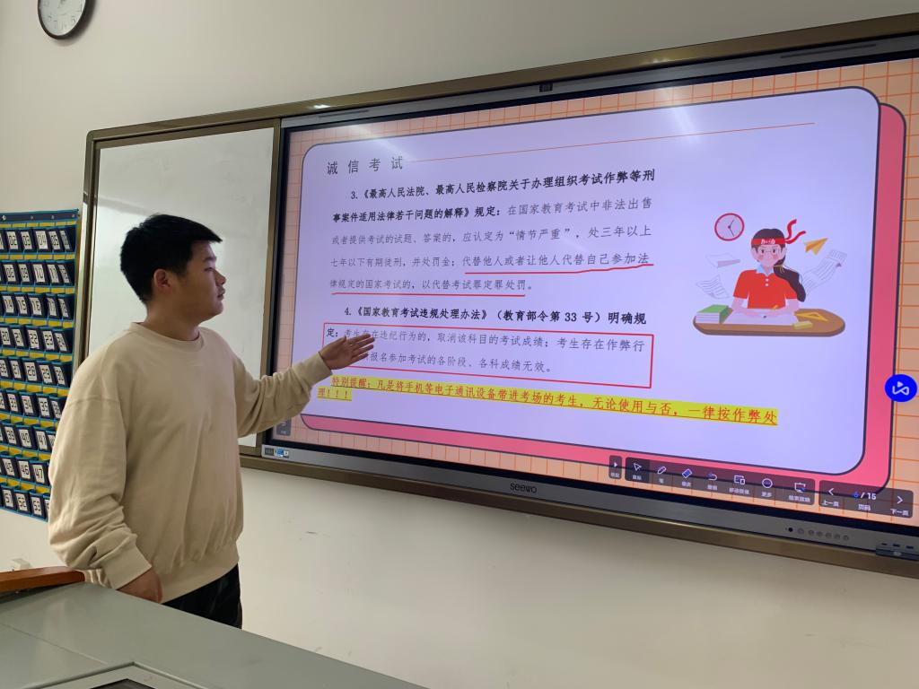 会上,辅导员老师们带领员工学习《国家教育考试违规处理办法》(教育部令第33号)等相关法律法规中有关考试舞弊的相关处理办法,并通过真实案例讲解帮助员工了解考试作弊的危害和造成的严重后果,同时也告诫员工切勿触摸考试红线,务必做到认真备考,诚信应考,共建诚信考场,让员工牢固树立诚信应考的责任意识。