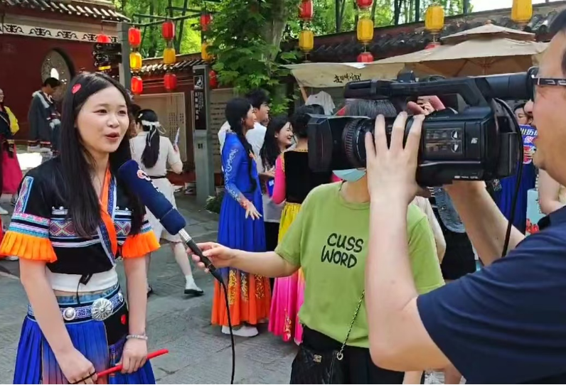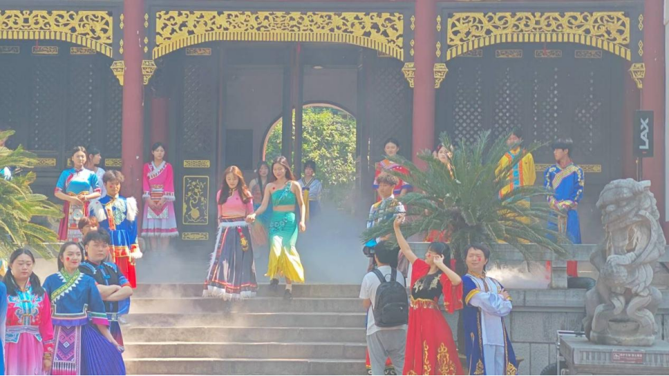 除此之外,志愿者们纷纷参加了一系列的文化演出活动。在晴川阁的三楚胜境,志愿者们为来访游客演唱了《爱我中华》的歌曲。游客们在悠扬的歌声中,体验到了文化传承的力量,感受到了泱泱中华的文化魅力。在演唱结束后,志愿者们身着少数民族服饰进行走秀,向游客们展示不同民族的服饰文化。一幕幕亮眼的画面被记录下来,在璀璨的文化星河中,少数民族服饰以其独特的魅力和深厚的内涵,成为中华民族传统文化的重要组成部分。许多游客纷纷表示,通过此次活动,他们对少数民族服饰有了更加深入的了解和认识,也更加热爱和尊重各民族的文化传统。