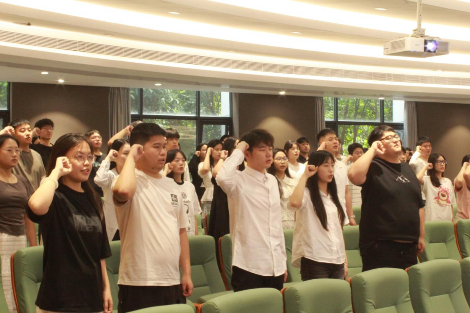 在活动的最后环节,全体毕业生党员在王珉的带领下,面向鲜红的党旗,举起右拳,重温了入党誓词。铿锵有力的誓言在会场内回荡,每位党员的眼中都闪烁着坚定和热忱。面对未来,他们将以更加饱满的热情和更加坚定的信念,发挥党员的先锋模范作用,为社会的发展作出新的更大的贡献。