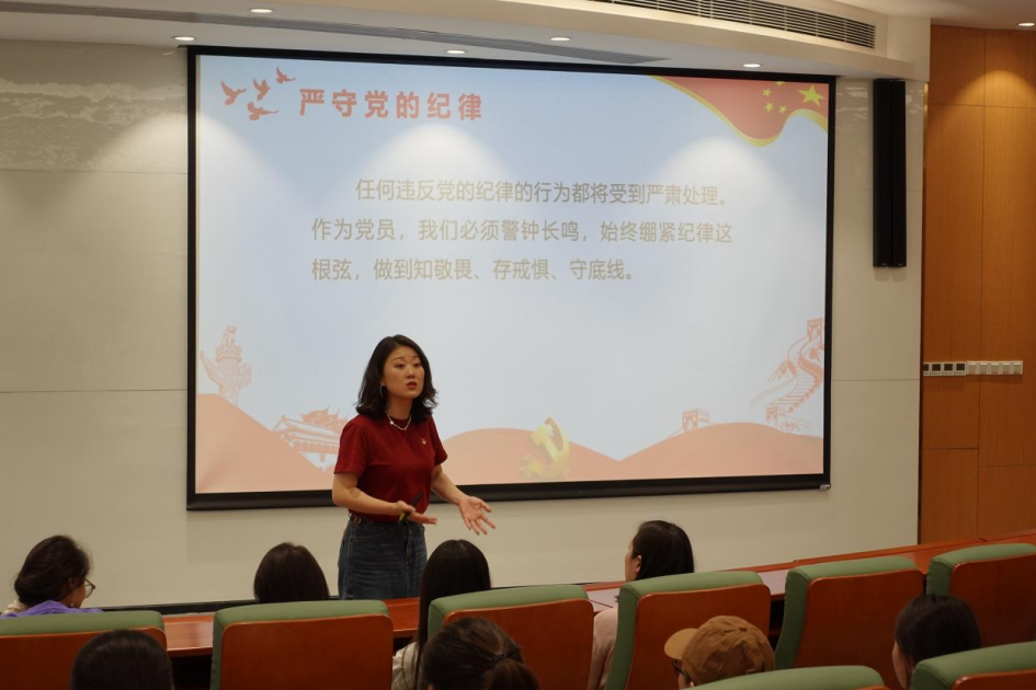 党课伊始,王珉以“永葆初心,扬帆远航”为主题,强调了共产党员的责任感和使命感,从“面对挑战坚守初心”“严守党的纪律”“勇担新时代使命”以及“永葆共产党人的本色”四个方面进行了深入浅出的讲解。她提到,每一位党员都应该自觉遵守党的纪律,特别是政治纪律和政治规矩,确保在思想上政治上行动上同党中央保持高度一致。作为一名中共党员,我们要将所学知识和能力运用到实践中去,无论是参加工作还是继续深造,都应该立足本职岗位,努力创造优异成绩,在自己的岗位发光发热,为社会作出应有的贡献。同时也祝大家学业有成,前程似锦,不管走多远,母校是大家永远的家,是大家最坚强的后盾。
