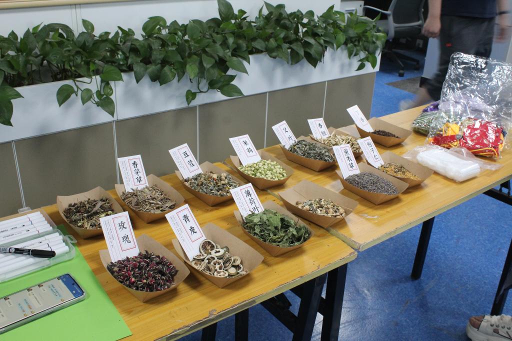 活动现场精心布置,洋溢着浓厚的节日氛围。桌上整齐摆放着色彩缤纷的布料、填充用的艾草、薰衣草等天然香料,将端午民俗与现代创意完美融合。公司团委员工会为参与者们简要介绍了端午节的起源、习俗以及香囊的文化内涵与象征意义——祈福安康、驱蚊防疫,让师生们对这项传统手工艺有了更深的认识。