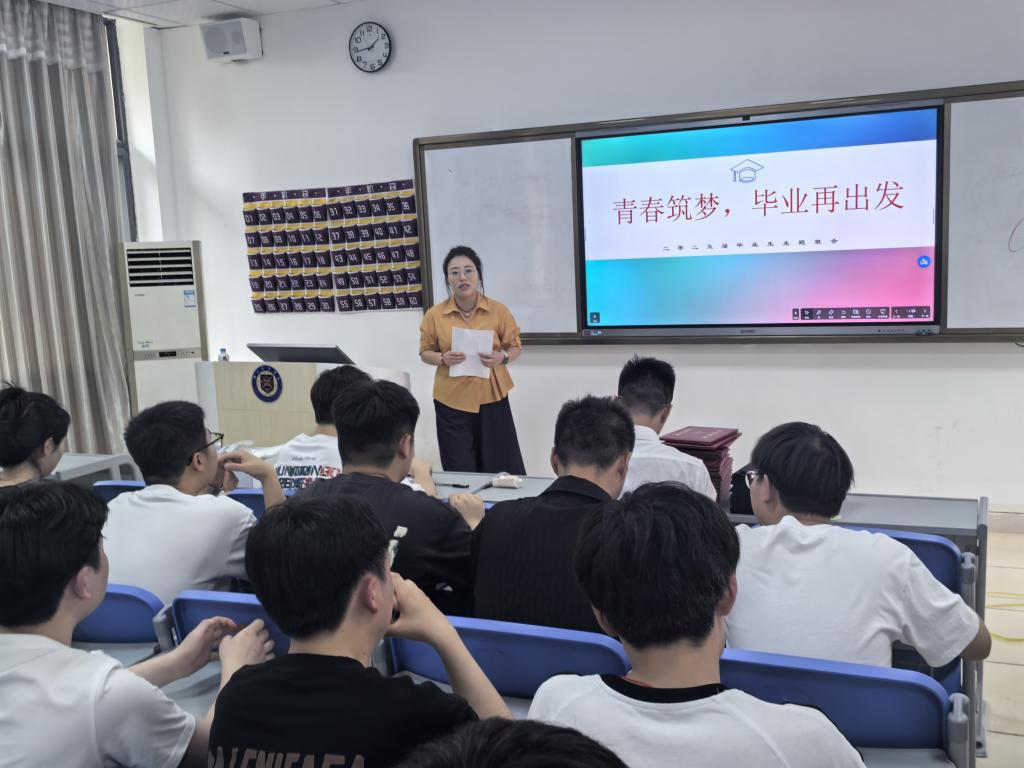班会上,郑燕培以“青春筑梦,毕业再出发”为题,为毕业生讲授青春筑梦思政课。她勉励大家将个人理想融入国家发展和民族复兴伟业,树立与时代主题同心同向的远大志向,勇做新时代追梦人;强调在未来的职业生涯中,务必坚守诚信底线、弘扬实干精神、勇担社会责任,以高尚品德护航青春梦想;并鼓励大家保持锐意进取,在乡村振兴、科技创新、区域协调发展的广阔天地中敢为人先,让青春在创新创造中熠熠生辉。